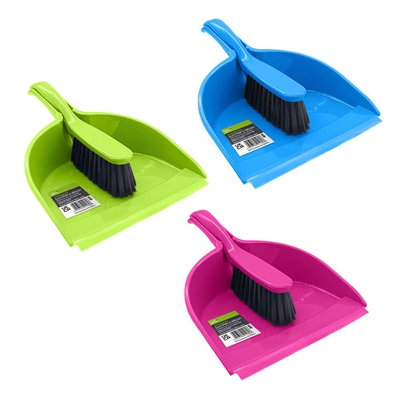 BRIGHT & HOMELY DUSTPAN & BRUSH SET ASSORTED COLOURS