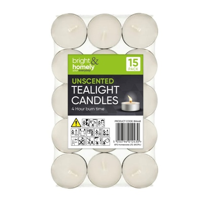 BRIGHT & HOMELY TEALIGHT CANDLES 15 PACK 4 HOUR BURN TIME
