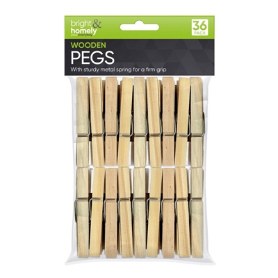BRIGHT & HOMELY WOODEN PEGS 36 PACK