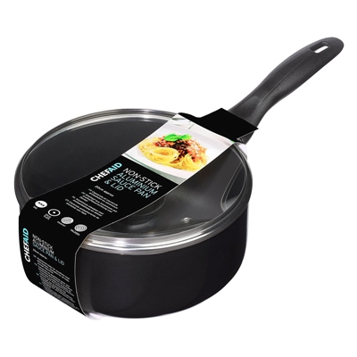 CHEF AID NON STICK SAUCEPAN WITH GLASS LID 18CM