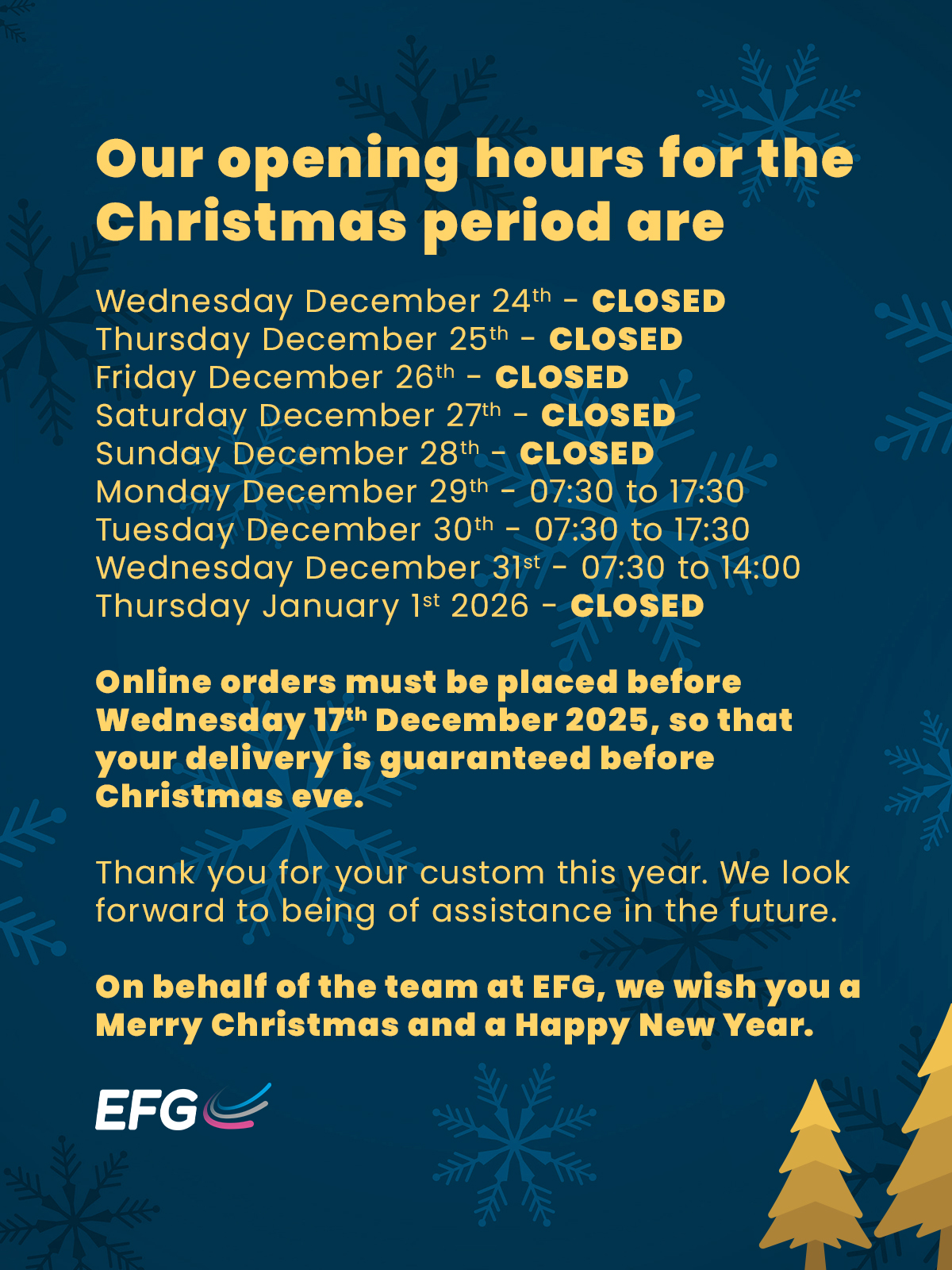 Christmas Opening Hours & Delivery Information