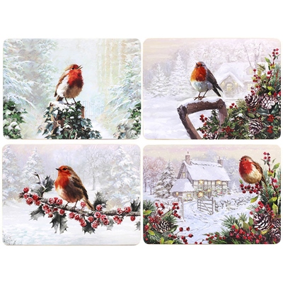 CHRISTMAS PLACEMATS ROBINS SET 4
