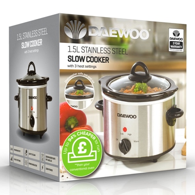 DAEWOO SLOW COOKER 1.5LTR STAINLESS STEEL 12/07