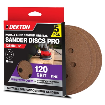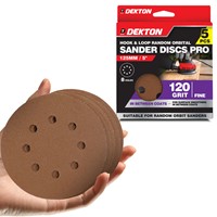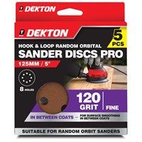 DEKTON HOOK & LOOP RANDOM ORBITAL SANDER DISCS PRO 120 GRIT 5 PIECES