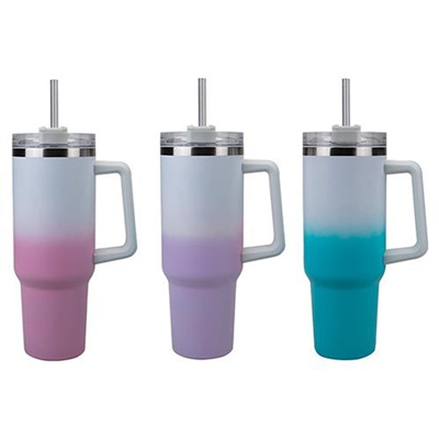 DOUBLE WALL OMBRE DRINKING CUP WITH STRAW ASSORTED 40OZ