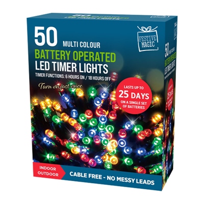 FESTIVE MAGIC LED B/O 50 TIMER LIGHTS MULTI