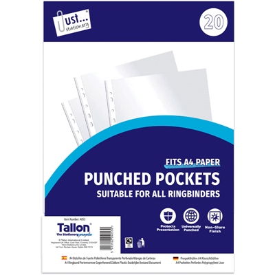 JUST STATIONERY FILE PUNCHED POCKETS 20