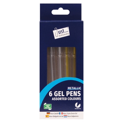 JUST STATIONERY PENS GEL SILVER GOLD 6