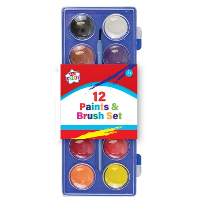 KIDS CREATE WATERCOLOUR PAINTS AND BRUSH SET OF 12
