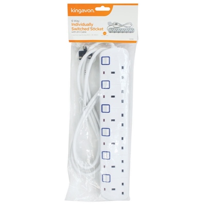 KINGAVON 6 WAY INDIVIDUALLY SWITCHED SOCKET 2M