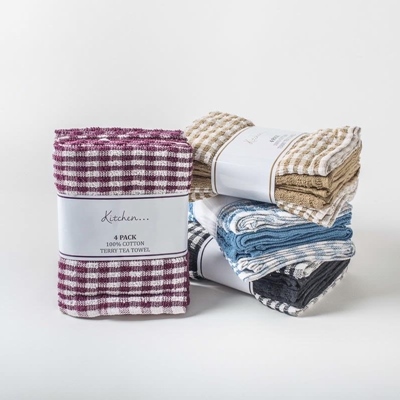 TEA TOWELS CHECKED 4 PACK ASSORTED (sp)
