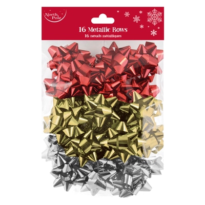 NORTHPOLE TRAD MIX METALLIC BOWS 16PK