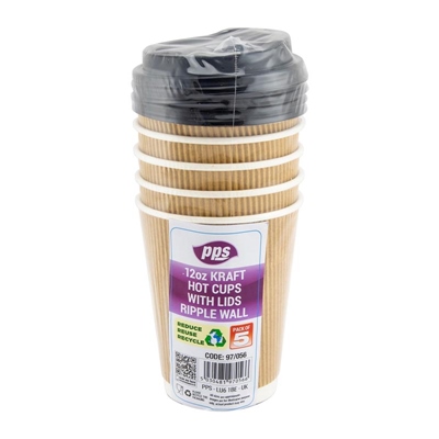 PPS DRINK CUPS RIPPLE WITH LIDS 120Z 5PC
