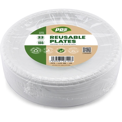 PPS PLASTIC 100 PLATES 23CM