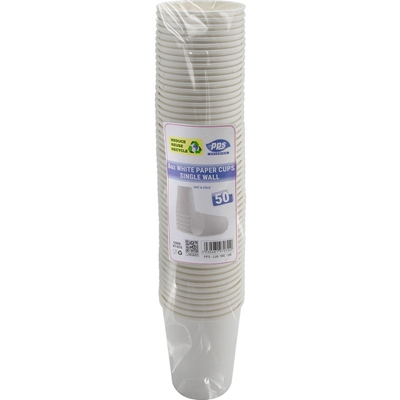 PPS SINGLE WALL CUP WHITE 8OZ 50 PIECES