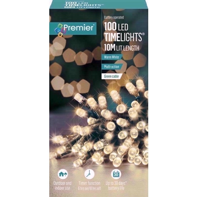 PREMIER BATTERY OPERATED 100 LED TIMER LIGHTS WARM WHITE