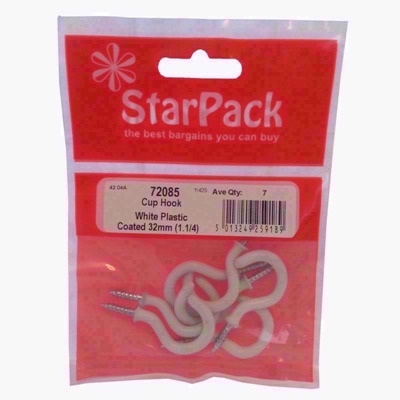 STARPACK CUP HOOK WHITE PLASTIC COATED 32MM
