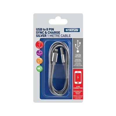 STATUS 8 PIN USB SYNC&CHARGER 1M SILVER