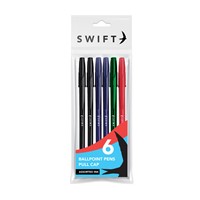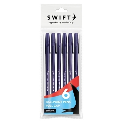 SWIFT PULL CAP BALLPOINT PENS BLUE 6 PACK