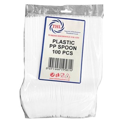 THL SPOON PLASTIC REUSABLE WHITE 100PCS