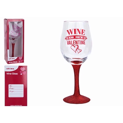 VALENTINES WINE GLASS WITH GLITTER BASE LOVE