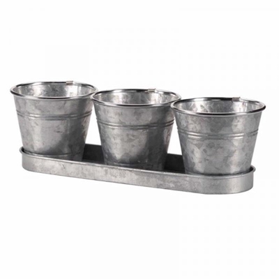 WINDOWSILL HERB POTS GALVANISED PK3